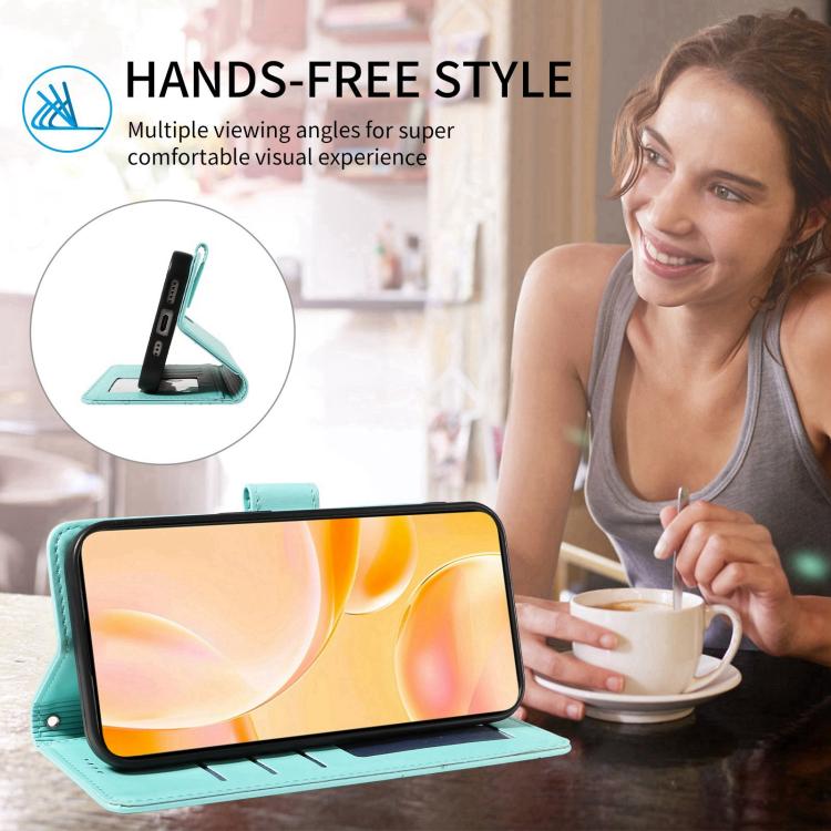 Funda de cuero con bloqueo RFID para Samsung Galaxy S21 FE 5G, diseño de corazón con perro en relieve (verde)