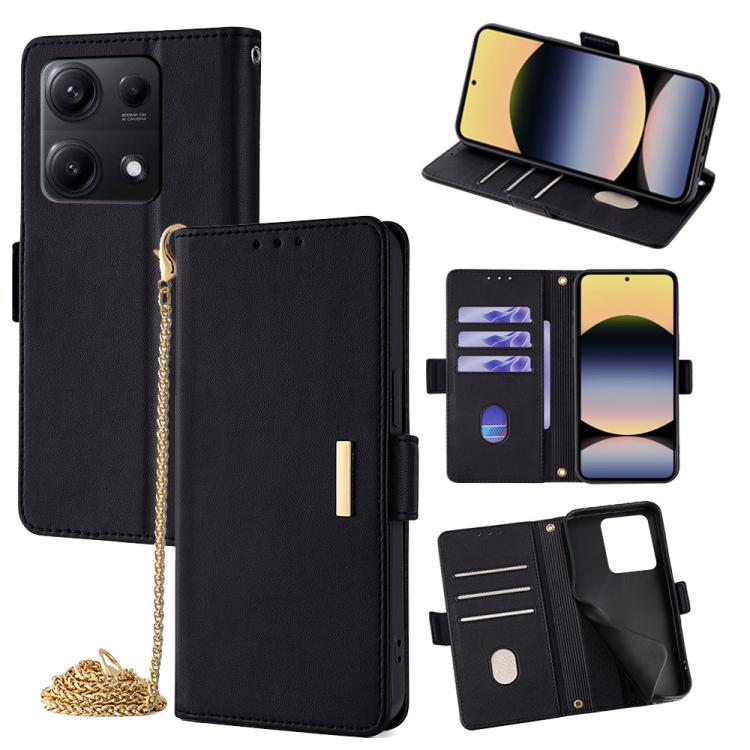 Funda de cuero con cadena cruzada para Redmi Note 14S 4G (negra)