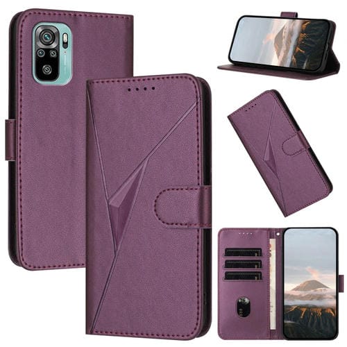 Funda de Cuero con Hebilla y Diseño Triangular para Redmi Note 10 4G (Morado Oscuro)