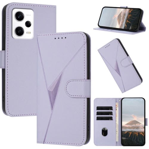 Funda de Cuero con Hebilla y Diseño de Triángulos para Redmi Note 12 Pro+ (Morado Claro)