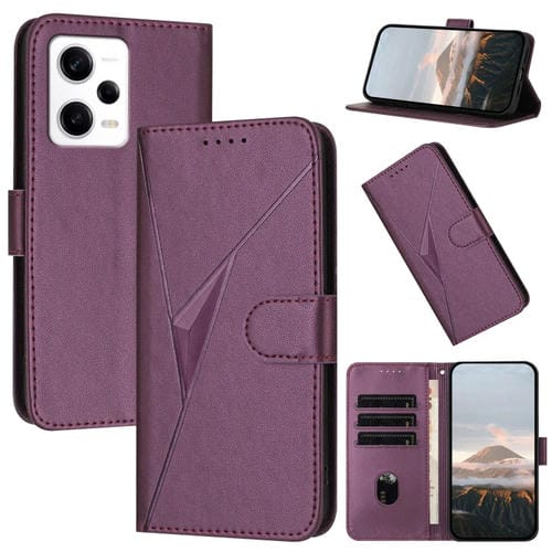 Funda de Cuero con Hebilla y Diseño de Triángulos para Redmi Note 12 Pro+ (Morado Oscuro)