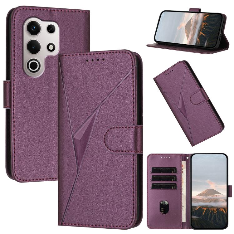 Funda de Cuero Itel S25 Ultra con Cierre de Hebilla y Diseño Triangular (Morado Oscuro)