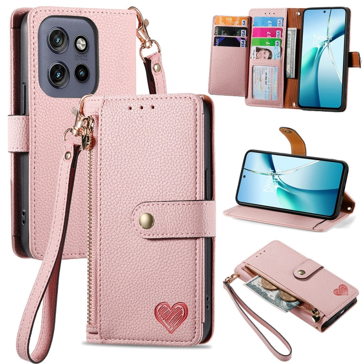 Funda de Cuero con Cordón y Cremallera Love para Motorola Moto S50 (Rosa)