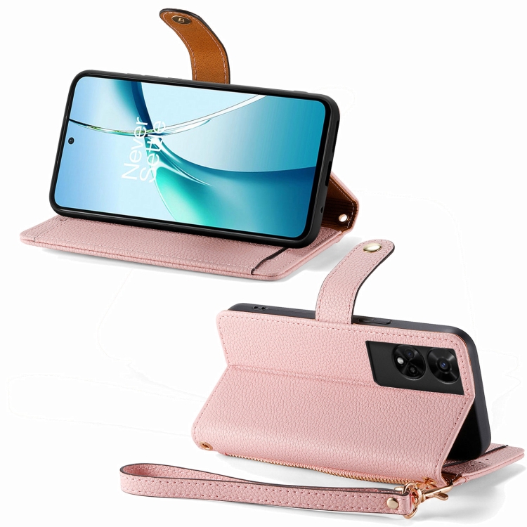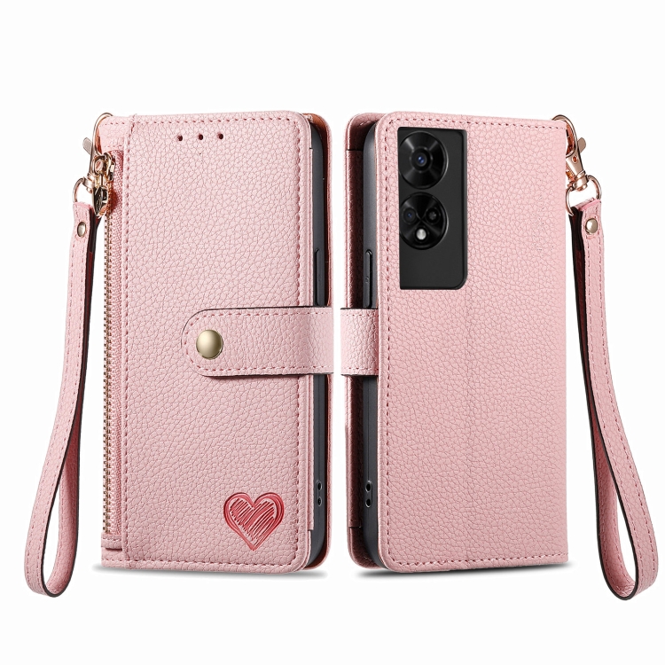 Funda de Cuero con Cordón y Cremallera Love para TCL 50 5G (Rosa)