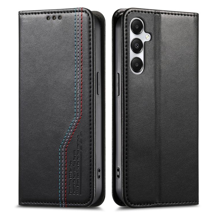 Funda de cuero con correa elástica y ventosa magnética para Samsung Galaxy M36 5G (negra)