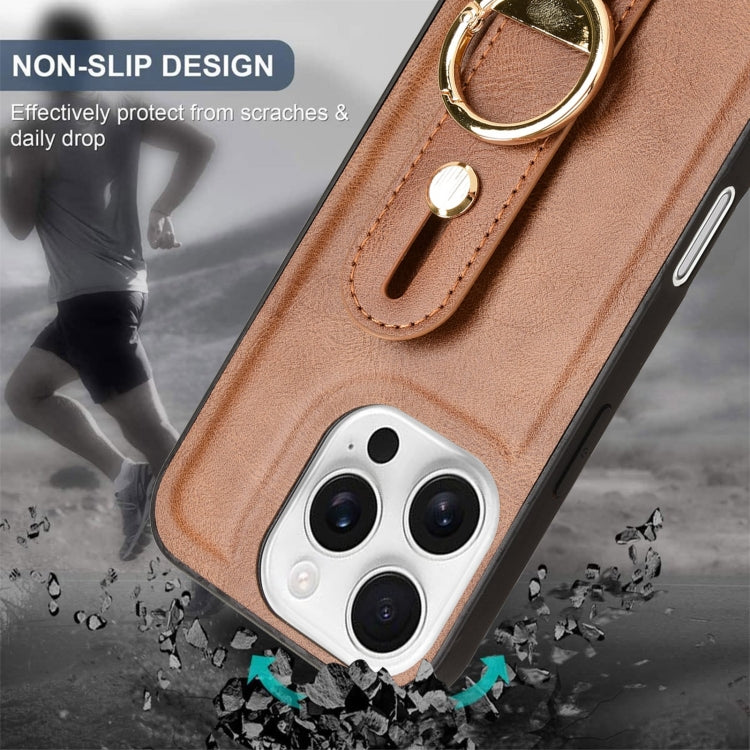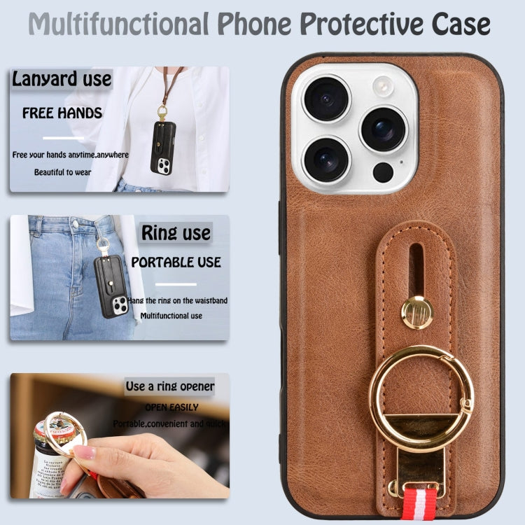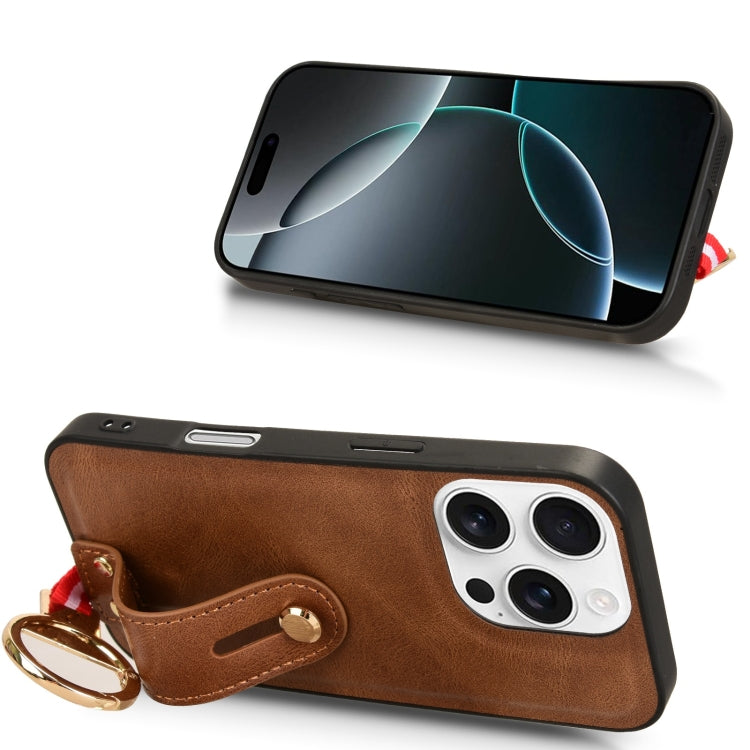 Funda de Cuero con Correa para la Muñeca para iPhone 16 Pro (Marrón)