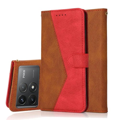 Funda de Cuero con Costuras de Dos Colores para Teléfono Xiaomi Poco F6 Pro (Marrón y Rojo)