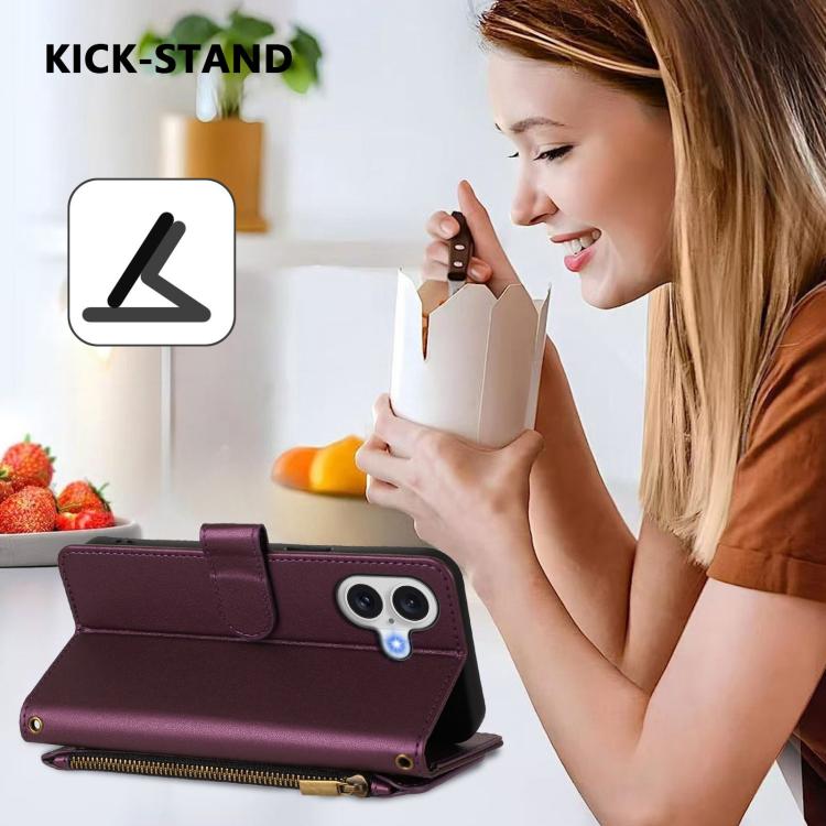 Funda de cuero con cremallera para iPhone 17, diseño de mariposas, flores y amor (morado oscuro)