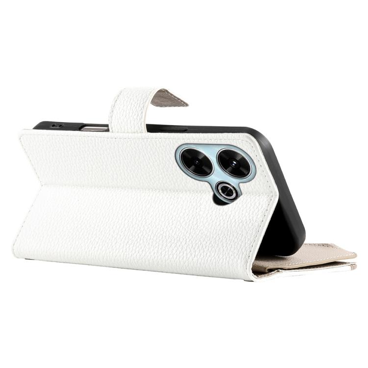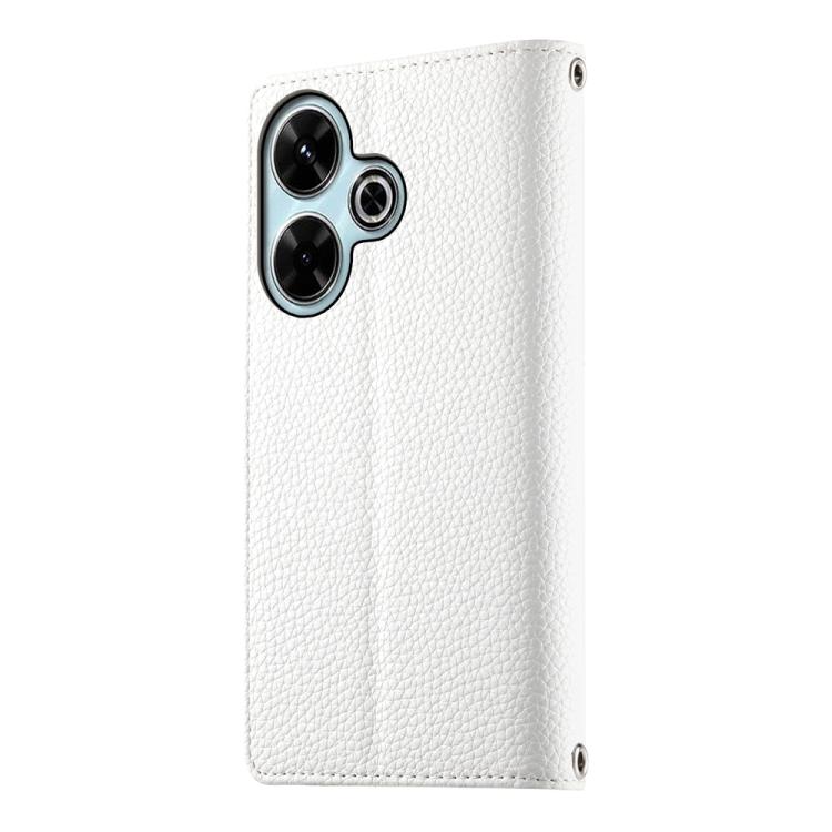 Funda de cuero con cremallera para Redmi 13 4G / 5G / Xiaomi Poco M6 4G, con costuras, para múltiples tarjetas y correa corta (blanca)