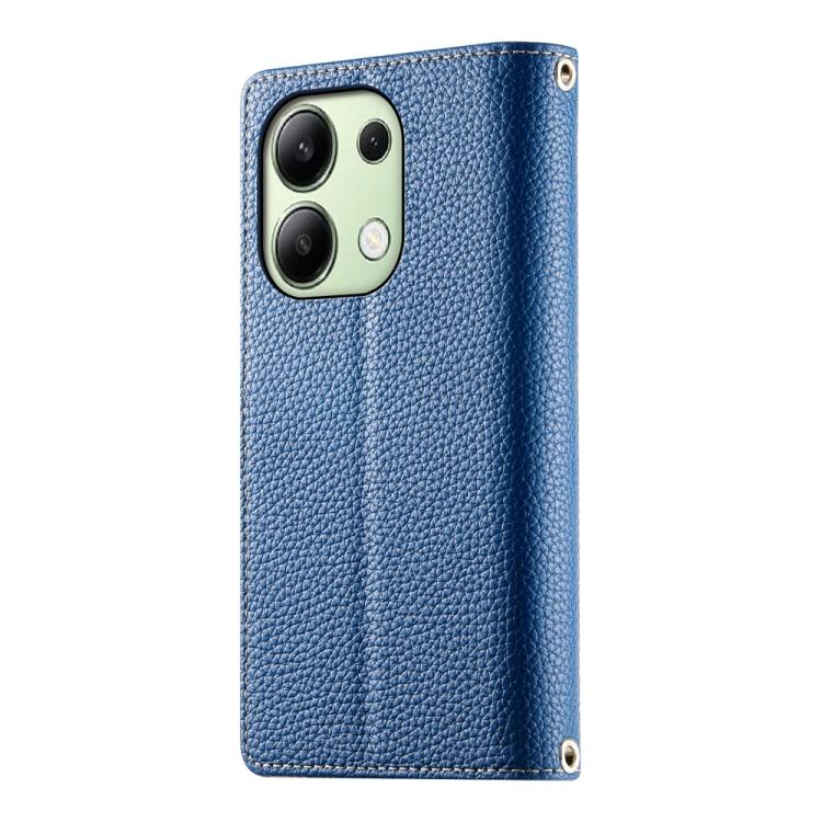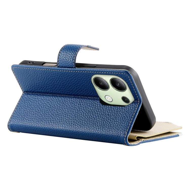 Funda de cuero con cremallera para Redmi Note 13 4G, con costuras globales, para múltiples tarjetas y correa corta (azul oscuro)