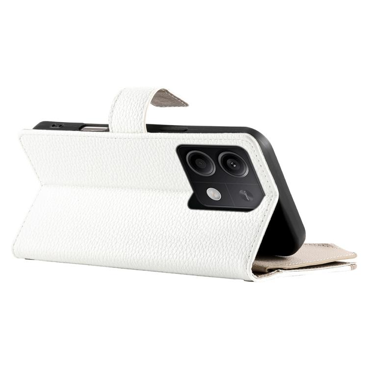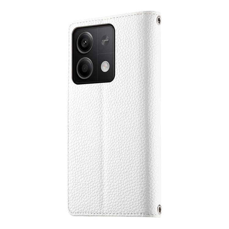 Funda de cuero con cremallera para Redmi Note 13 5G, con costuras globales, para múltiples tarjetas y correa corta (blanca)