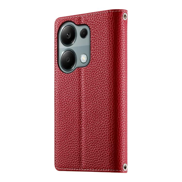 Funda de cuero con cremallera para Redmi Note 13 Pro 4G / Poco M6 Pro, con costuras, para múltiples tarjetas y correa corta (roja)