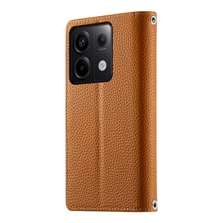Funda de cuero con cremallera para Redmi Note 13 Pro / Xiaomi Poco X6, con costuras, para múltiples tarjetas y correa corta (marrón)