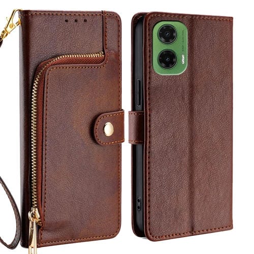 Funda de Cuero con Cremallera para Motorola Moto G35 5G (Marrón)