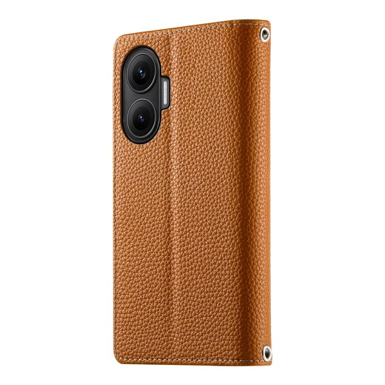 Funda de cuero con cremallera y múltiples tarjetas para Redmi Turbo 4 Pro y Xiaomi Poco F7 con costuras y correa corta (marrón)