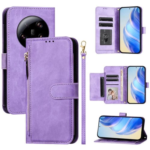 Funda de Cuero con Cremallera y Ranuras para Múltiples Tarjetas para Xiaomi 13 Ultra (Morado)