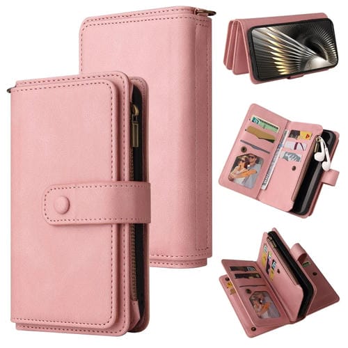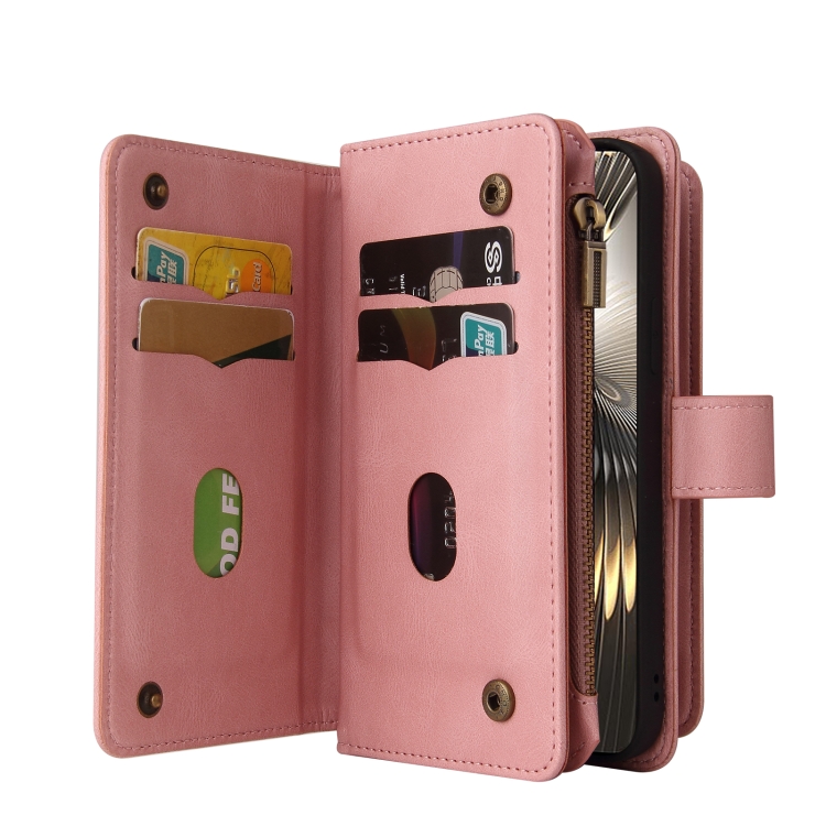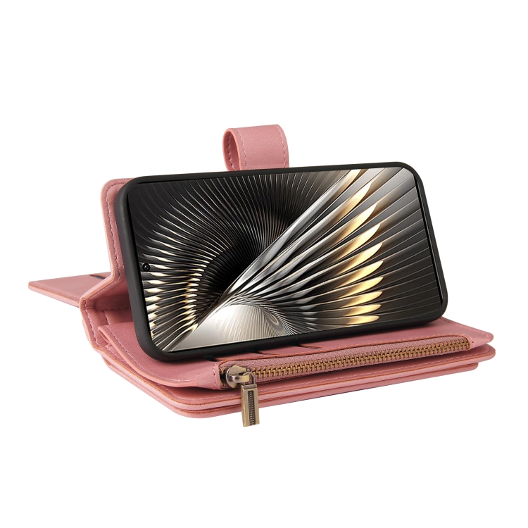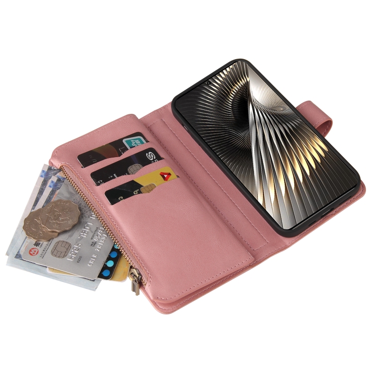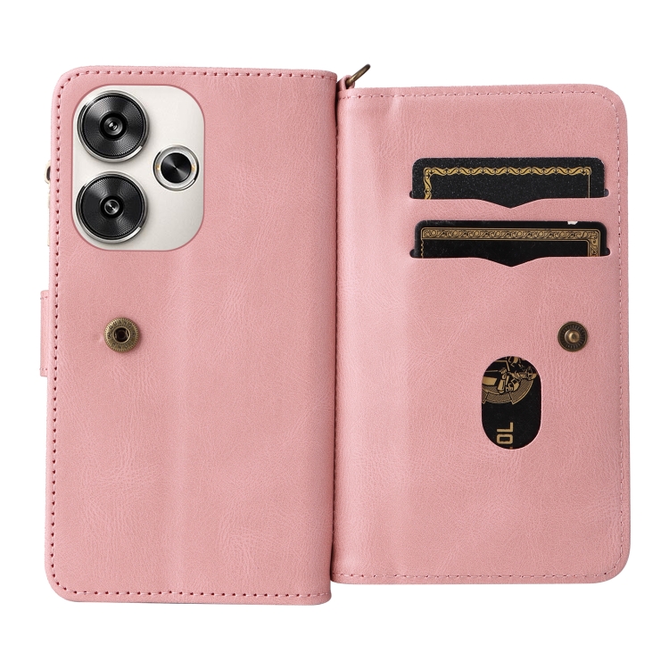 Funda de Cuero con Cremallera y Ranuras para Múltiples Tarjetas para Xiaomi Poco F6 (Rosa)