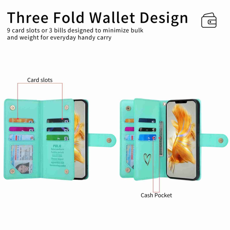 Funda de Cuero con Cremallera y Ranuras para Tarjetas Huawei Mate 50 Pro Pola Love (Verde Claro)
