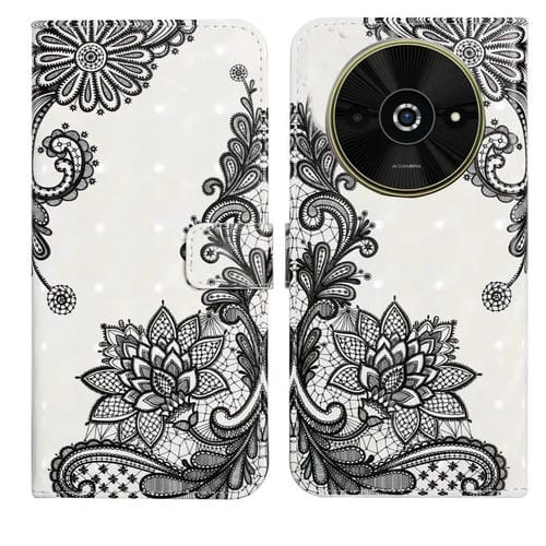 Funda de Cuero con Dibujo 3D En Relieve de Aceite para Xiaomi Poco C61 (Flor de Encaje)