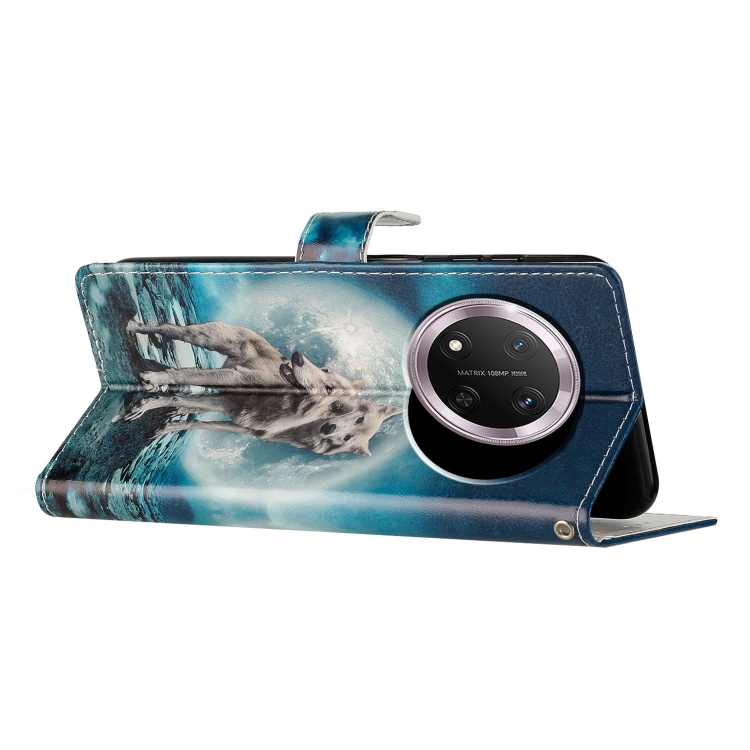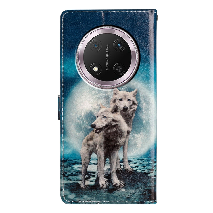 Funda de Cuero para Honor X9C 5G con Dibujo a Color (Twin Wolves)