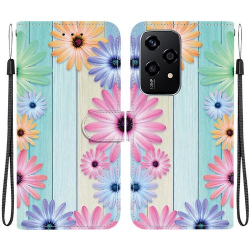 Funda de Cuero Honor 200 Lite con Dibujo a Color y Textura de Cristal (Girasoles)