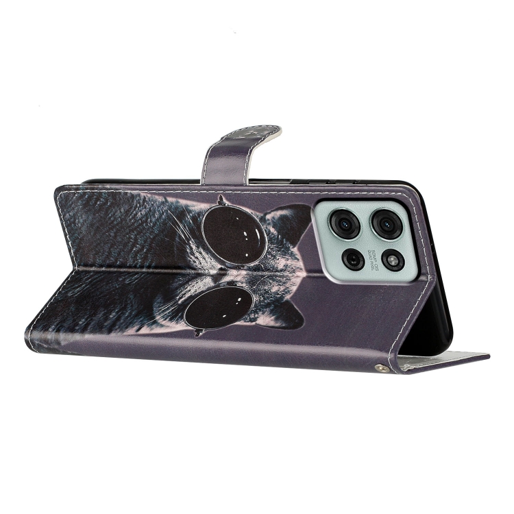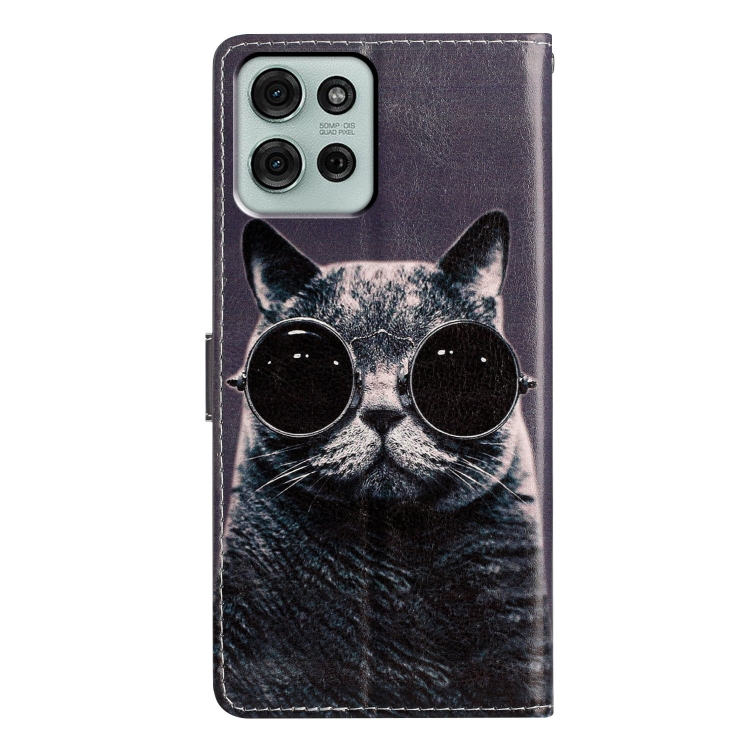 Funda de Cuero para Motorola Moto G75 5G con Dibujo de Colores (Gafas de Sol con Gato)