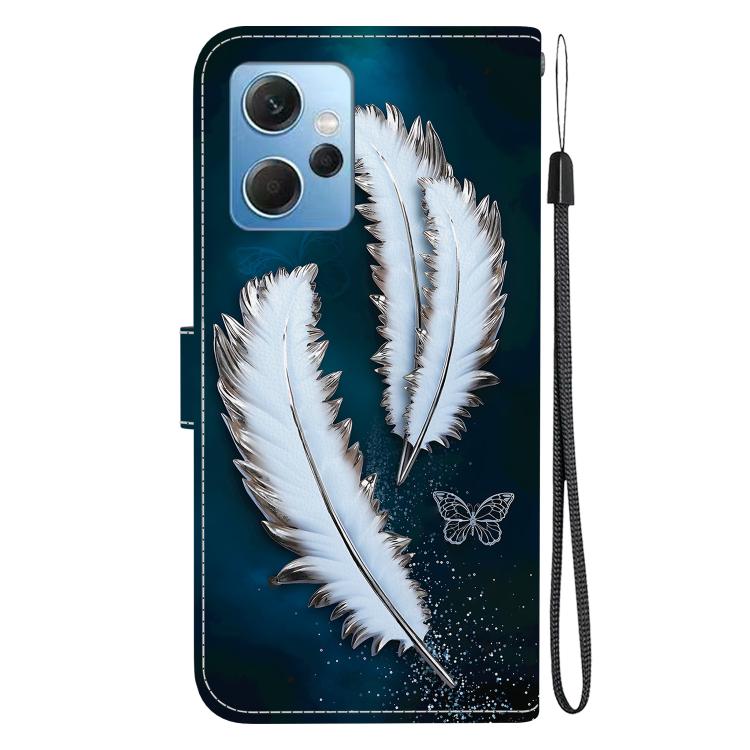 Funda de Cuero con Dibujo de Colores y Textura de Cristal Global para Redmi Note 12 4G (Plumas de Mariposa Blancas)