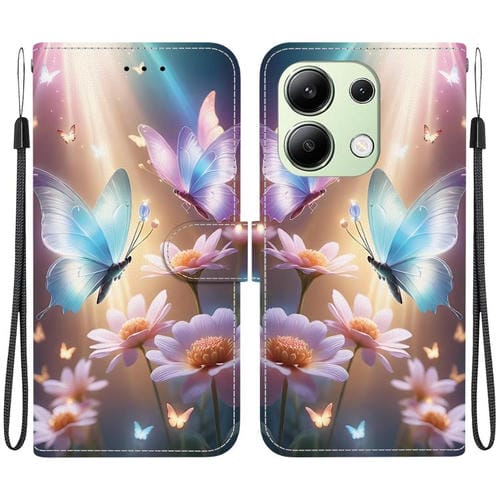 Funda de Cuero con Dibujo de Colores y Textura de Cristal Global para Redmi Note 13 4G (Mariposa, Amor y Flores)