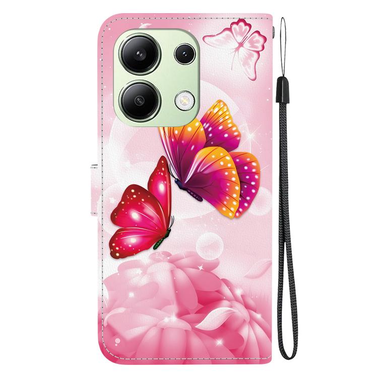 Funda de Cuero con Dibujo de Colores y Textura de Cristal Global para Redmi Note 13 4G (Mariposas Rosas)