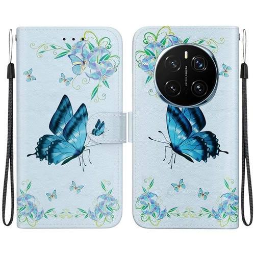 Funda de Cuero para Honor Magic7 Pro con Dibujo de Colores y Textura de Cristal (Pensamientos Azules)