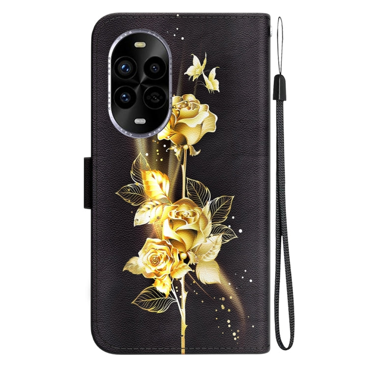 Funda de Cuero para Huawei Nova 13 Pro con Dibujo de Colores y Textura de Cristal (Mariposa Dorada y Rosa)