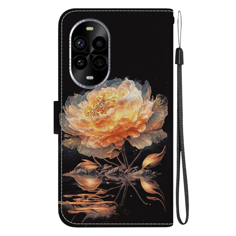 Funda de Cuero Huawei Nova 13 Pro con Dibujo de Colores y Textura de Cristal (Peonía Dorada)
