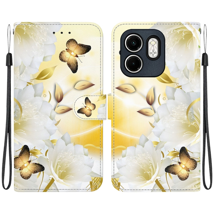 Funda de Cuero para Infinix Hot 50I Smart 9 con Dibujo de Colores y Textura de Cristal (Mariposa Dorada Epiphyllum)
