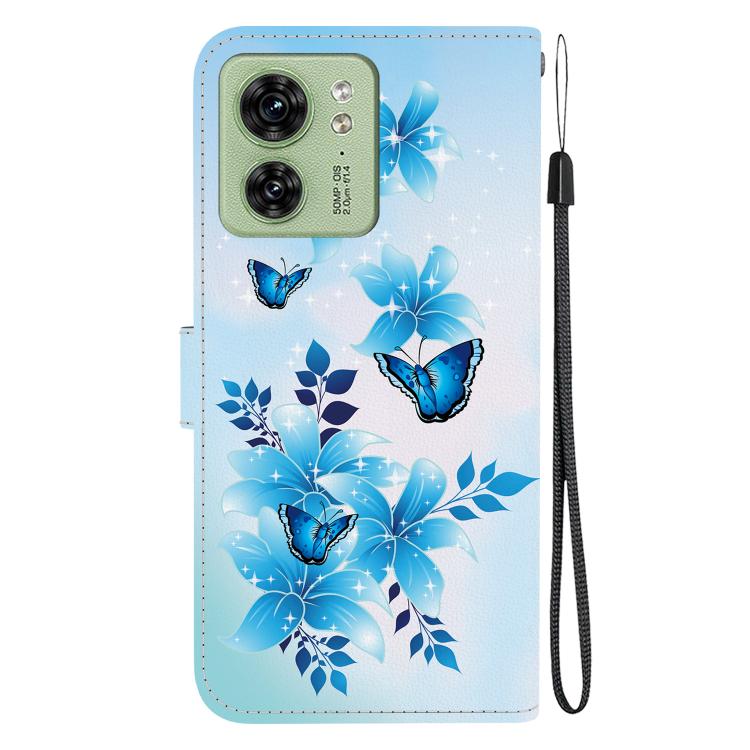 Funda de Cuero para Motorola Edge 40 con Dibujo de Colores y Textura de Cristal (Mariposas Azules)