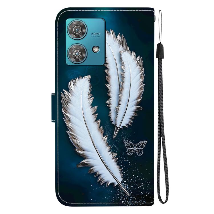 Funda de Cuero con Dibujo y Textura de Cristal para Motorola Edge 40 Neo (Plumas de Mariposa Blancas)