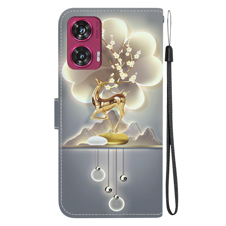 Funda de Cuero para Motorola Edge 50 Fusion con Dibujo de Colores y Textura de Cristal (Ciervo Sika)