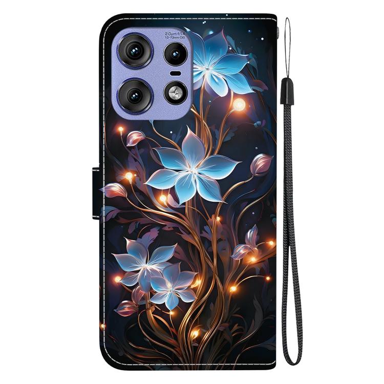 Funda de Cuero con Dibujo y Textura de Cristal para Motorola Edge 50 Pro (Flor de Linterna Pequeña)