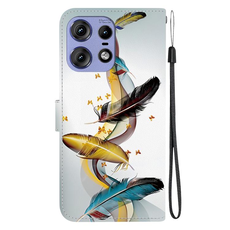 Funda de Cuero para Motorola Edge 50 Pro con Dibujo de Colores y Textura de Cristal (Plumas de Mariposa Doradas)