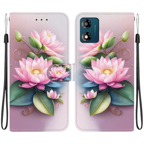 Funda de Cuero para Motorola Moto E13 con Dibujo de Colores y Textura de Cristal (Lotus)