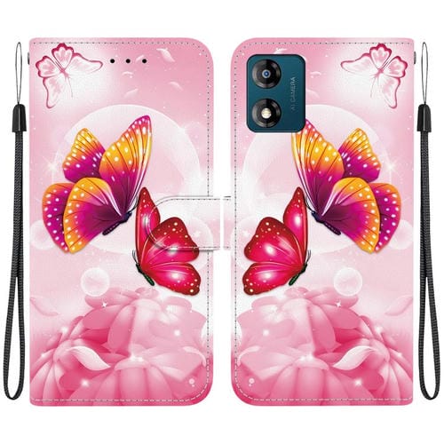 Funda de Cuero para Motorola Moto E13 con Dibujo de Colores y Textura de Cristal (Mariposas Rosas)