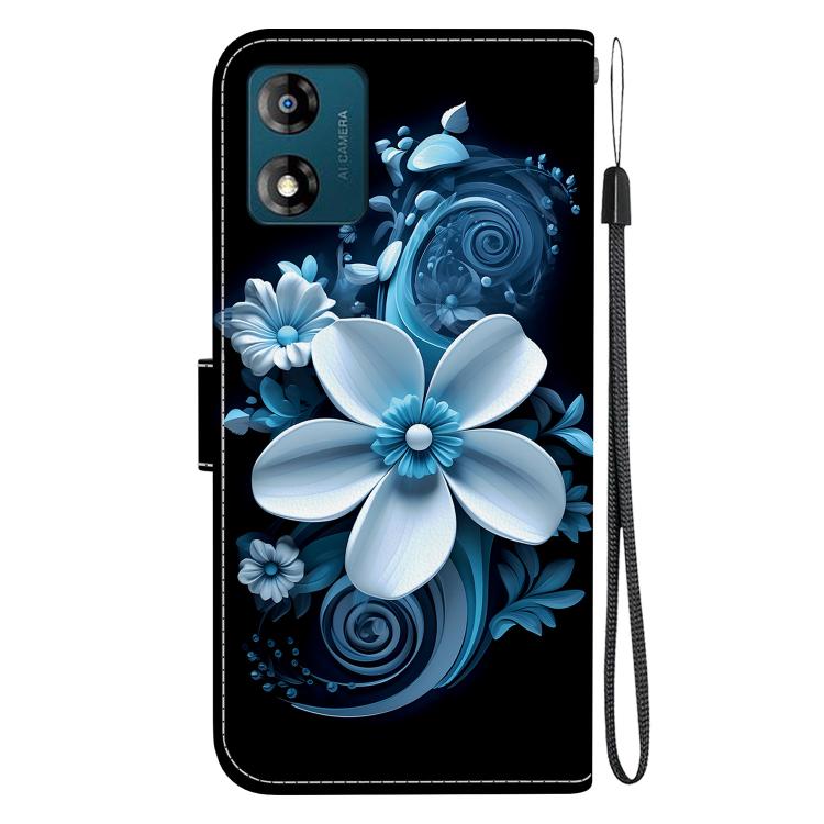 Funda de Cuero para Motorola Moto E13 con Dibujo de Colores y Textura de Cristal (Orquídea Negra)