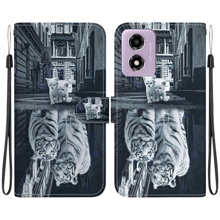 Funda de Cuero Motorola Moto G04S Moto E14 con Dibujo de Colores y Textura de Cristal (Reflejo de Gato y Tigre)