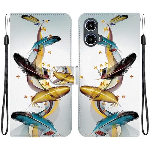 Funda de Cuero para Motorola Moto G34 5G con Dibujo de Colores y Textura de Cristal (Plumas de Mariposa Doradas)