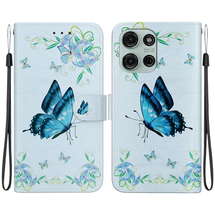 Funda de Cuero con Dibujo y Textura de Cristal para Motorola Moto G75 5G (Pensamientos Azules)
