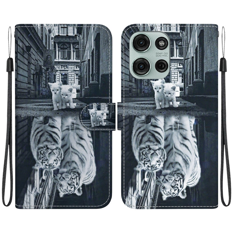 Funda de Cuero Motorola Moto G75 5G con Dibujo de Colores y Textura de Cristal (Reflejo de Gato y Tigre)