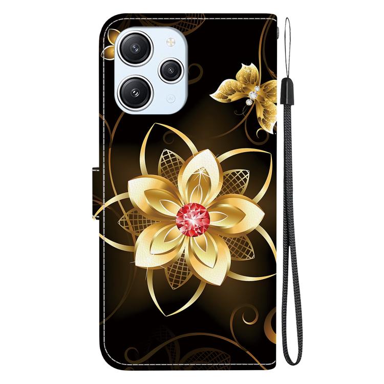 Funda de Cuero con Dibujo de Colores y Textura de Cristal para Redmi 12 4G/5G/Poco M6 Pro (Flor Dorada)