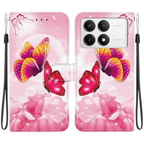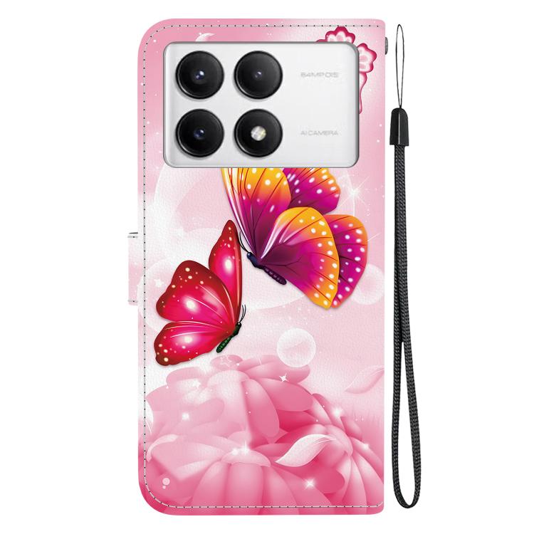 Funda de Cuero con Dibujo de Colores y Textura de Cristal para Redmi K70/K70 Pro (Mariposas Rosas)