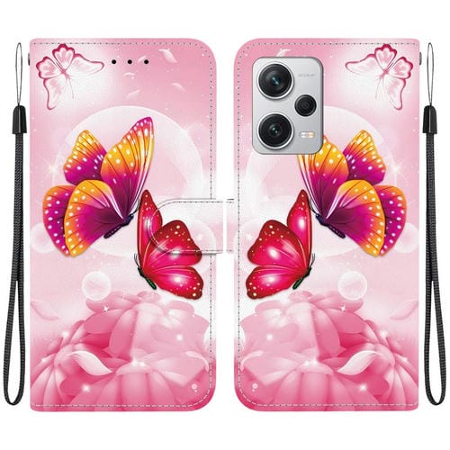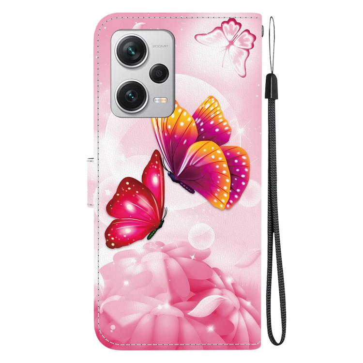 Funda de Cuero con Dibujo de Colores y Textura de Cristal para Redmi Note 12 Pro+ 5G (Mariposas Rosas)