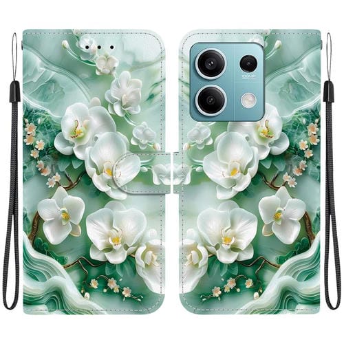 Funda de Cuero con Dibujo de Colores y Textura de Cristal para Redmi Note 13 5G (Flores de Jade)