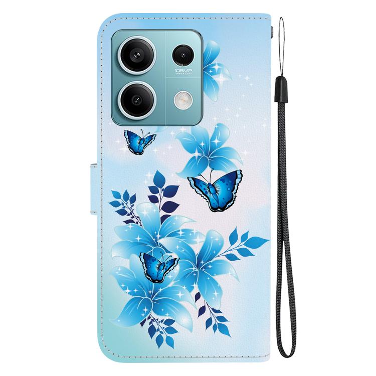 Funda de Cuero con Dibujo de Colores y Textura de Cristal para Redmi Note 13 5G (Mariposas Azules)